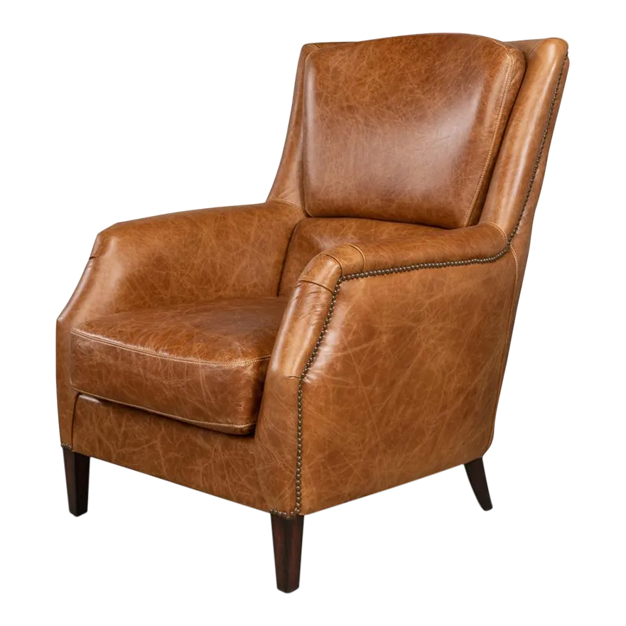 Traditional Brown Leather Armchair Chairish