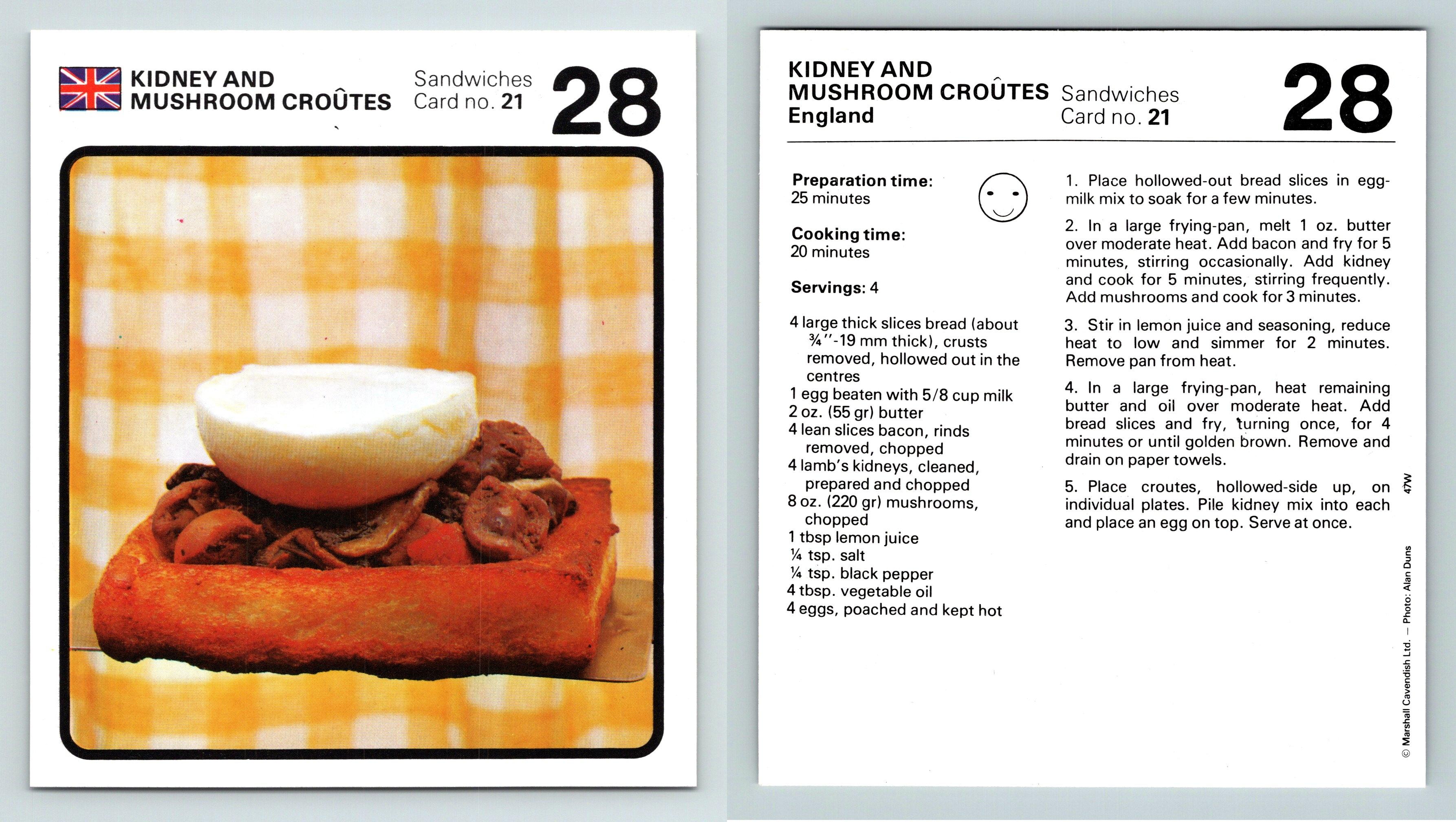 Kidney & Mushroom Croutes 21 Sandwiches Cavendish Int. 1970's Recipe