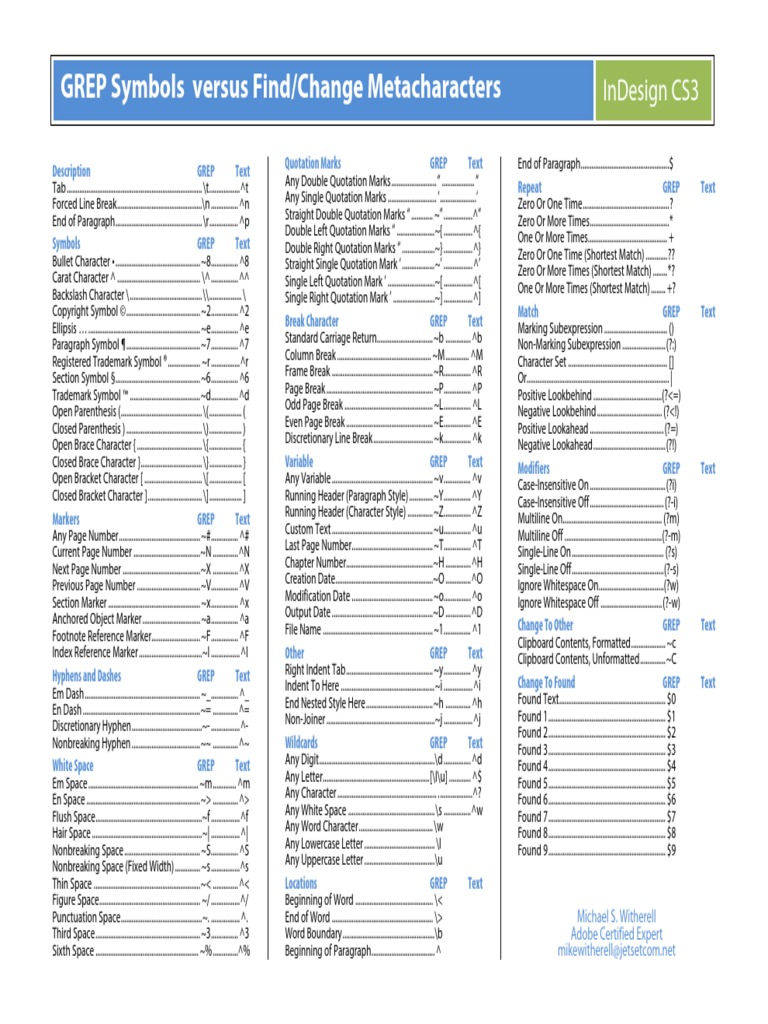 List of Grep Symbols PDF Symbols Typographical Symbols