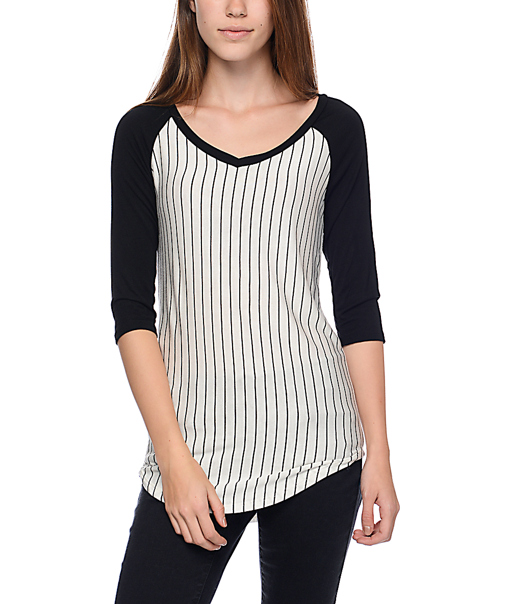 Trillium Jani Black Pinstripe VNeck Baseball TShirt Zumiez