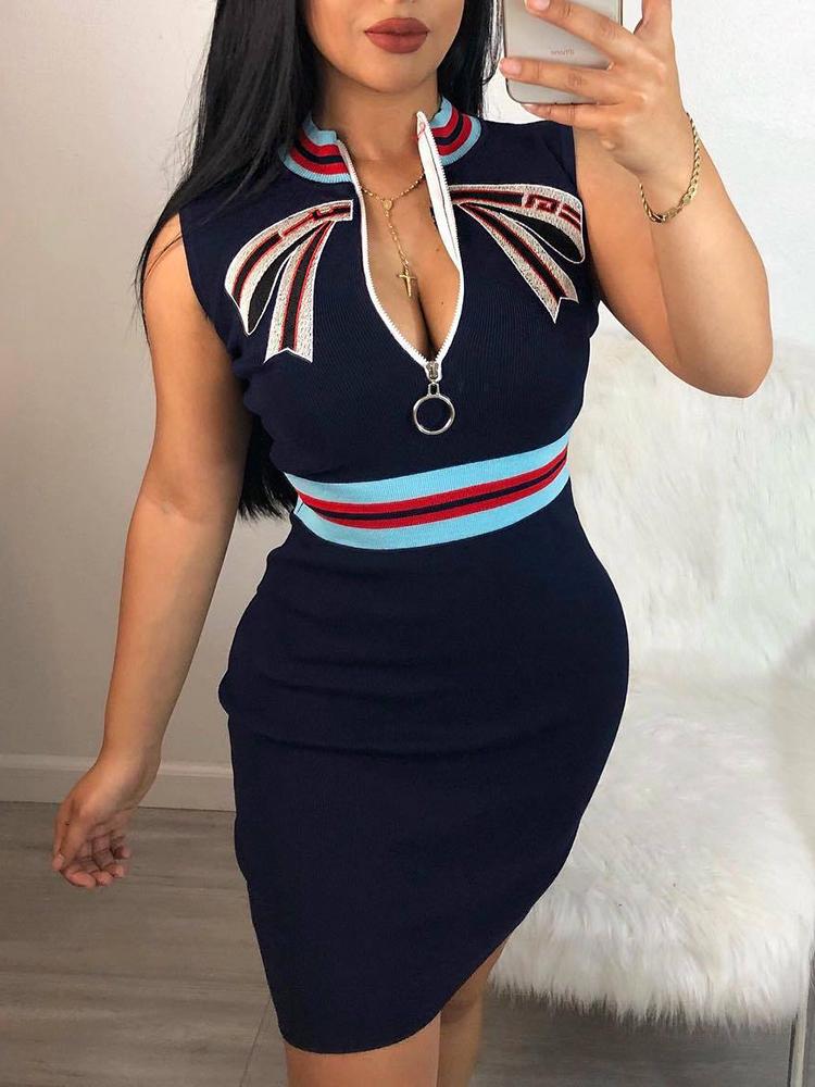Striped Tape Splicing Zipper Bodycon Dress