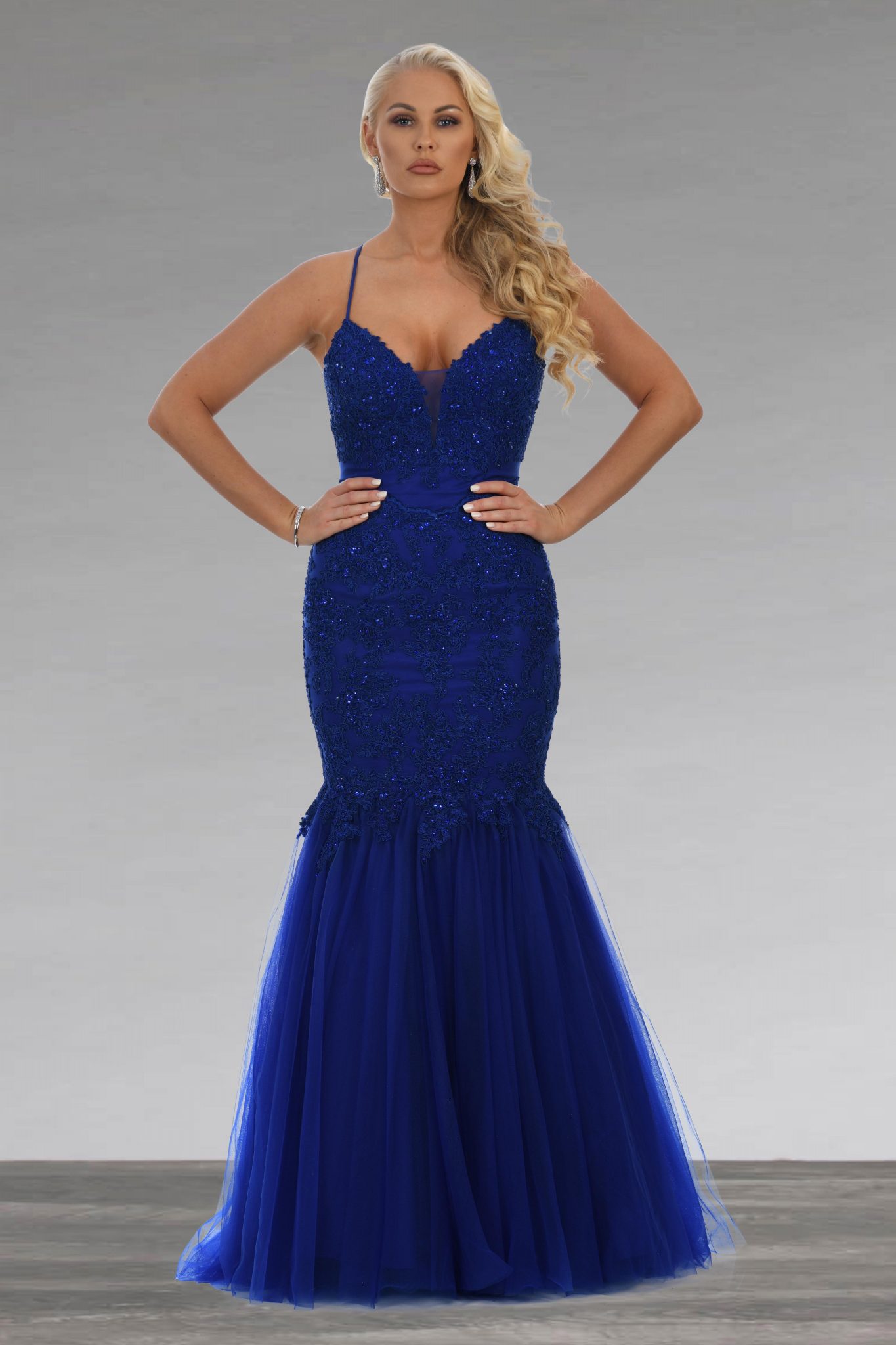 Full length lace fishtail dress. AF79678 Catherines of Partick