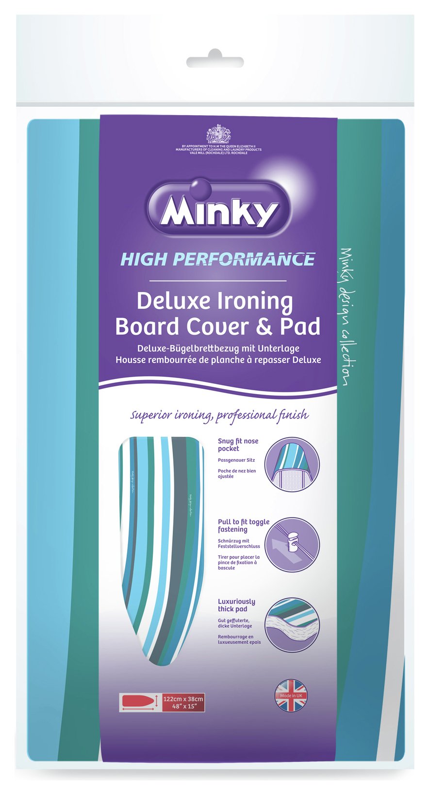 Minky Deluxe Ironing Board Cover 122 x 38 cm, MultiColour Ironing Board Cover 122 X 38 The minky deluxe ironing board cover fits large minky brand ironing boards (122 x 38 cms) perfectly, to give a high performance ironing. Minky easy fit 122 x 38cm ironing board cover & clips bundle is the. Size (cm) 122 x 38 cm remove this item clear all filter size (cm) price ok sort by set descending direction 3 items. Ironing Board Cover 122 X 38.