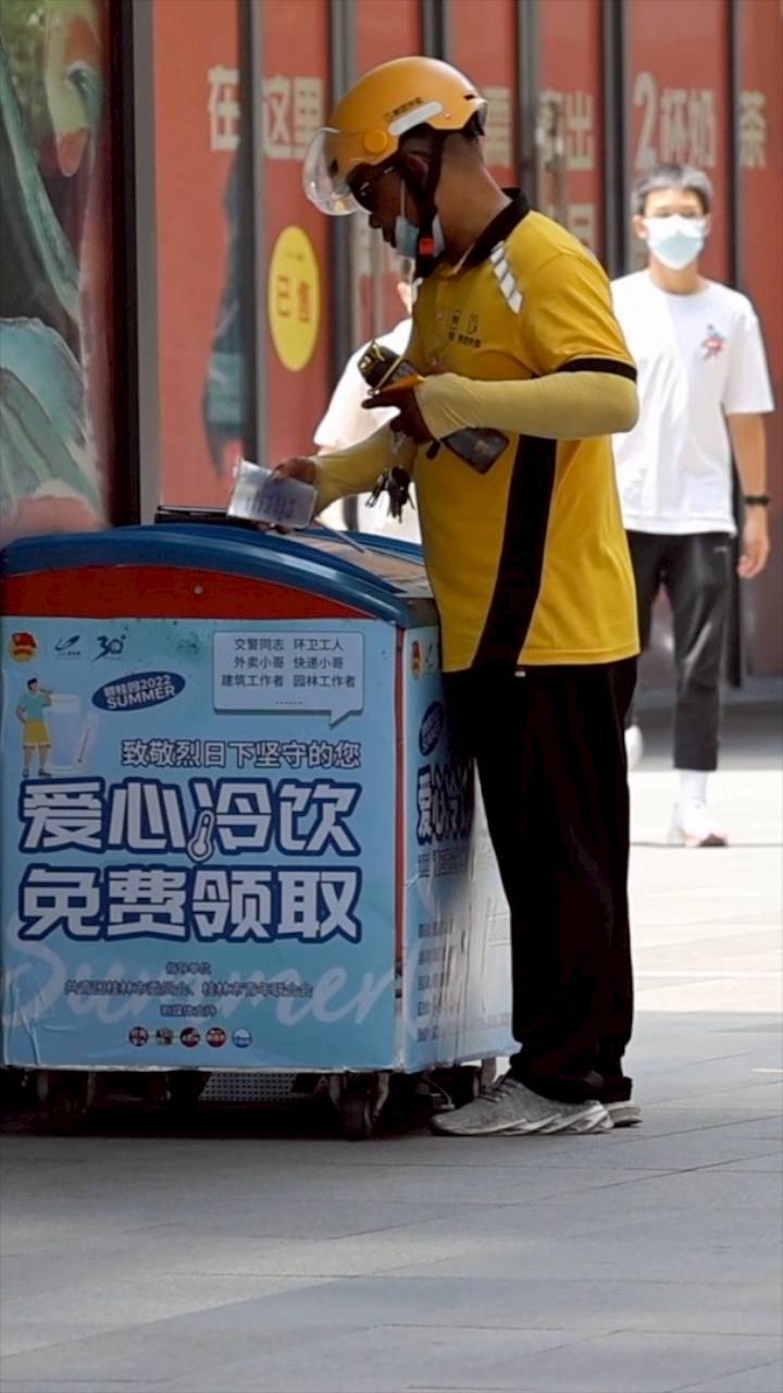 Selfservice fridge offers free drinks for outdoor workers XINHUA