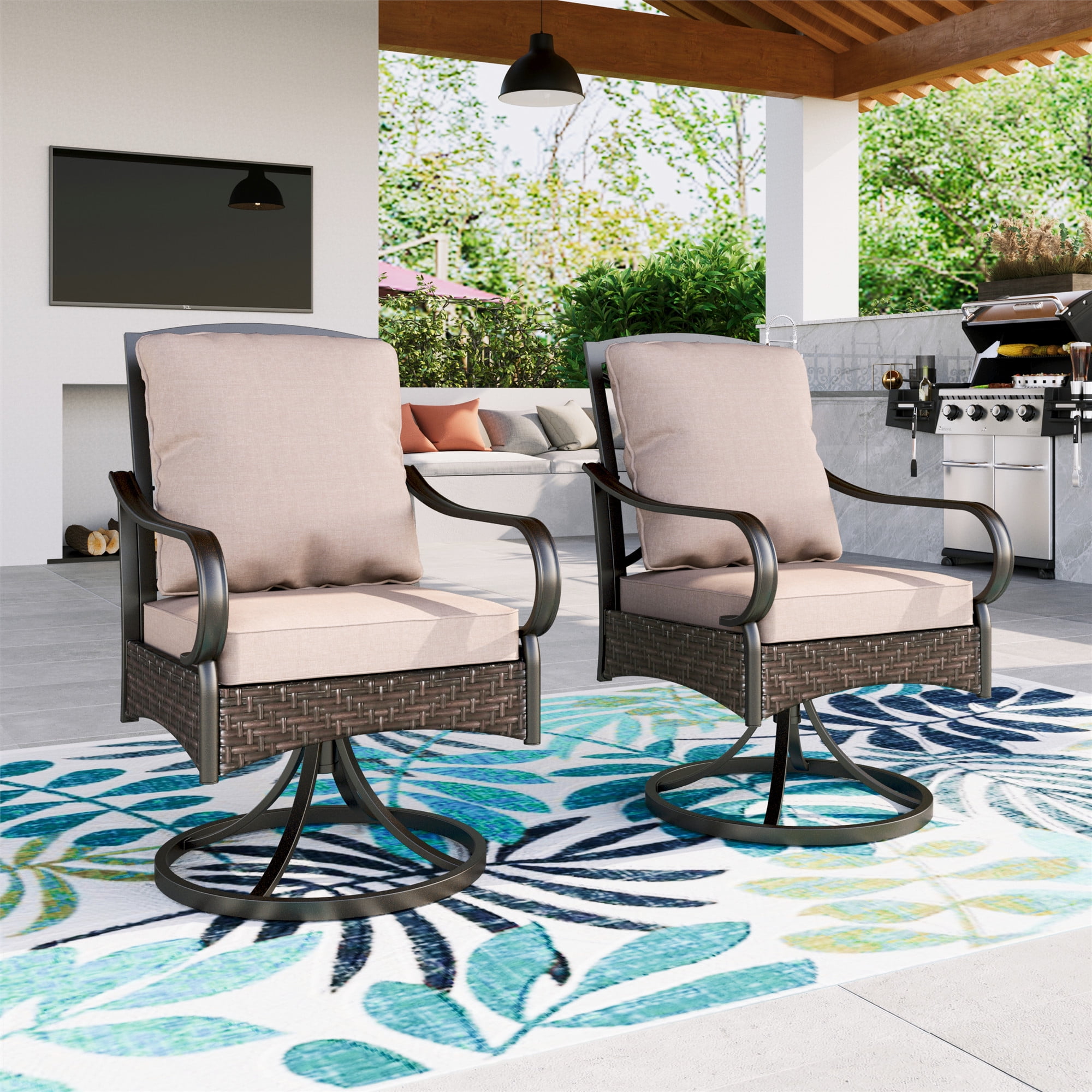 PHI VILLA Rattan Swivel Outdoor Dining Chairs, Set of 2 Swivel Outdoor Dining Chairs Transform your outdoor space with this stylish patio dining set, featuring a chic round table and comfortable padded swivel chairs. Browse a large selection of outdoor dining chairs in a wide range of sizes, finishes and styles. Whether for family gatherings, outdoor. Shop online for swivel outdoor dining chairs. Enhance your outdoor dining experience with our comfortable and stylish outdoor. Swivel Outdoor Dining Chairs.