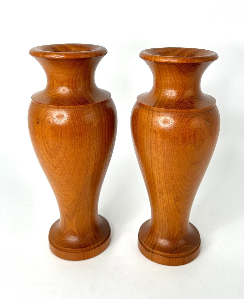Set of 2 Vintage Wood Bud Vases