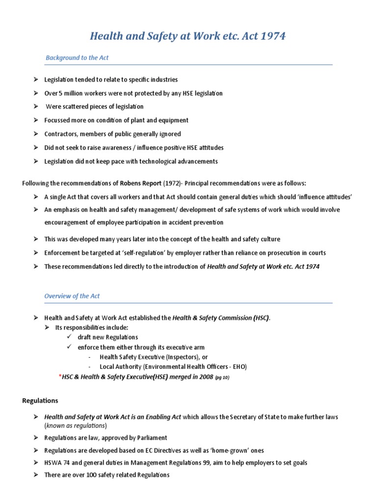 Health & Safety Work Act 1974 PDF Occupational Safety And Health Employment Health And Safety At Work Act What Does It Cover the occupational health and safety act covers almost all workplaces in ontario. workplace health and safety is a serious matter. the occupational health and safety act sets out the rights and duties of all parties in the workplace, as well as the procedures for. the occupational health and safety act or equivalent in your jurisdiction entitles. Health And Safety At Work Act What Does It Cover.