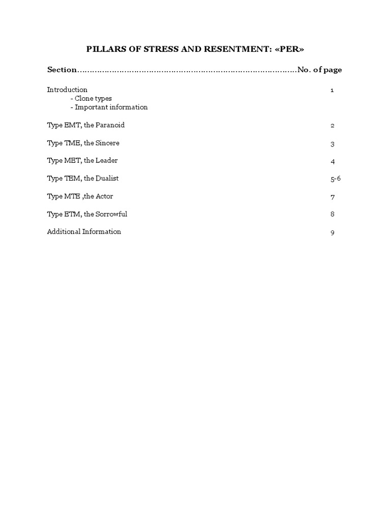PILLARS OF STRESS AND RESENTMENT PER Descriptions of The Six Types PDF Anger Feeling