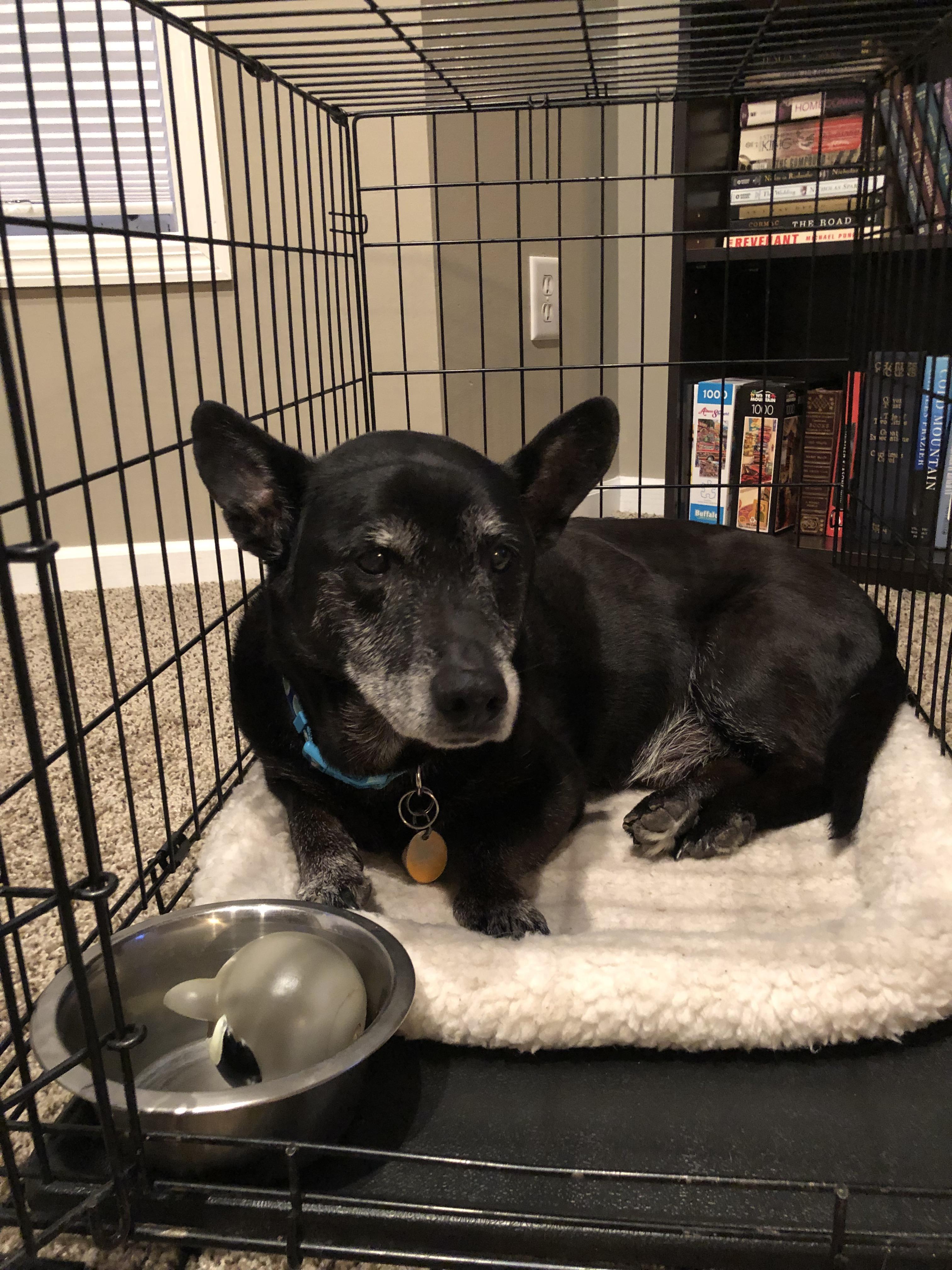 Crate retraining milestone! After some crate trauma resulting in