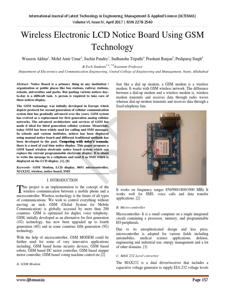 SMS Based Wireless Electronic Notice Board Using GSM PDF Modem Wireless Electronic Notice Board Using Gsm Ppt Gsm based wireless notice board is proposed in this project, the system is attended to be interface with user by using gsm technology with sms. The system uses a microcontroller connected to a gsm module and lcd display. Introduction it presents an sms based notice board incorporating the widely used gsm to facilitate the communication of displaying message on notice. Wireless Electronic Notice Board Using Gsm Ppt.