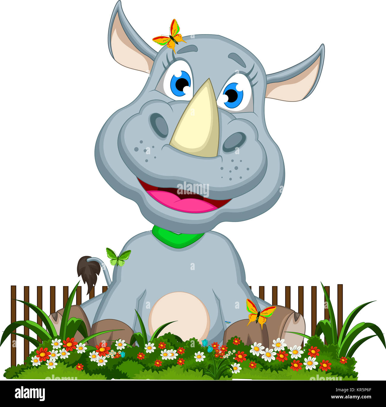funny rhino cartoon in flower garden Stock Photo Alamy