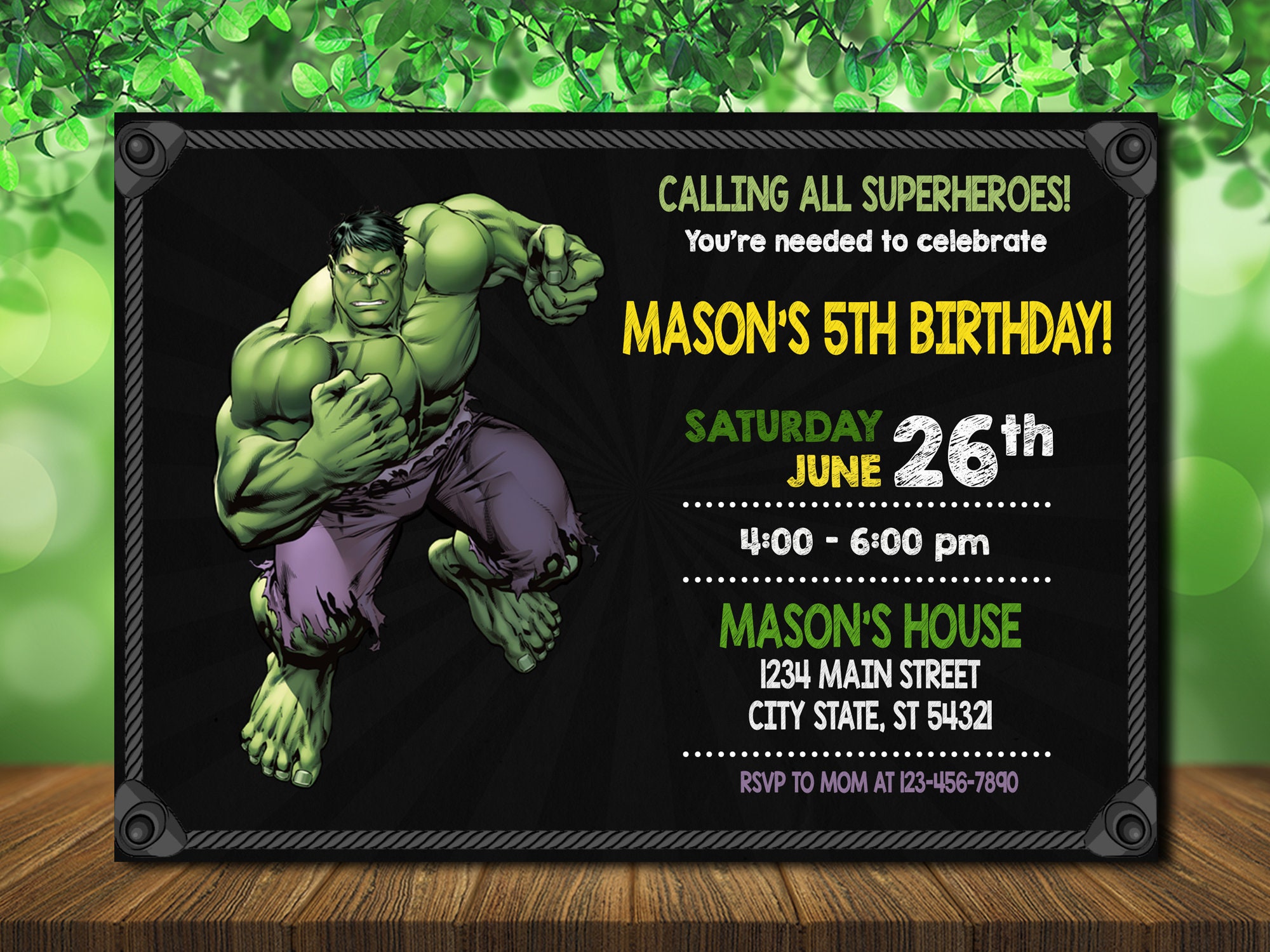 Hulk Birthday Invitation Hulk Digital Invite Hulk Boy Invitation