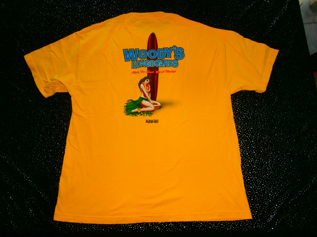 WOODYS LONGBOARDS TShirt Surf Hawaii Beach Surfboard HAWAIIAN SHIRT