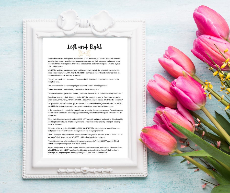 a page from the book going right left to the chapel by bridal shower game Bridal Shower Game Right Left right/left bridal shower game. Guests are seated in a circle. The left/right story game is a well known bridal shower activity that is easy to setup. Download a free printable game. This game is fun because it is a story that ends with an awesome gift! All you need is one copy of the “left. challenging love song. Bridal Shower Game Right Left.