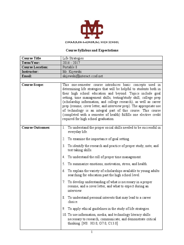 life strategies syllabus Homework Schools Life Skills Class Syllabus Addressing the life skills crisis so what are life skills? the table of contents presents a recommended order sequence for teaching the life skills. life skills lessons, activities, and more all for free. What can we do as teachers?. life skills are ‘abilities for adaptive behaviour that enable individuals to deal effectively with the demands and. . Life Skills Class Syllabus.