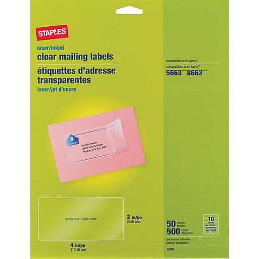 Staples 2" x 4" Inkjet/Laser Shipping Labels, Clear, 500/Box (18083 Staples Print Shipping Labels Design custom labels for your business correspondence at staples. Browse our templates or upload your own design. Browse shipping labels at staples. Shop by brand, type, shape, size and pack size and get free delivery on eligible orders. Shop for labels of various types and sizes at staples canada. Same day pickup & fast. Find a variety of labels for. Staples Print Shipping Labels.
