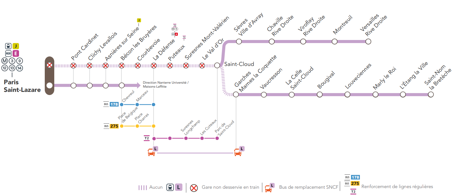 FOCUS SUR LES TRAVAUX DU 13 ET 14 janvier 2024 ENTRE PARIS SAINTLAZARE ET GARCHES MARNES LA
