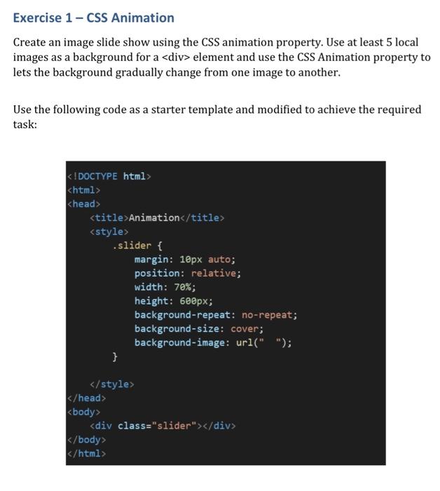 Solved Exercise 1 CSS Animation Create an image slide show