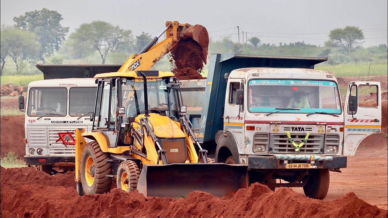 JCB 3dx Plus Loading Mud in Truck with Tata 2518 Tipper and Ashok