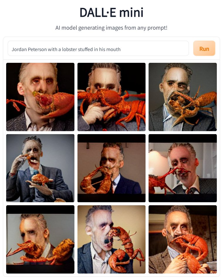Jordan Peterson with a lobster stuffed in his mouth r/dallemini