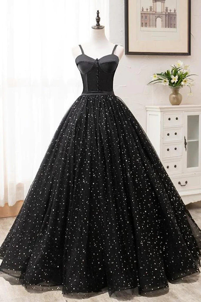 Vintage Ball Gown Princess Black Prom Dresses For Teens Sparkly Dresses