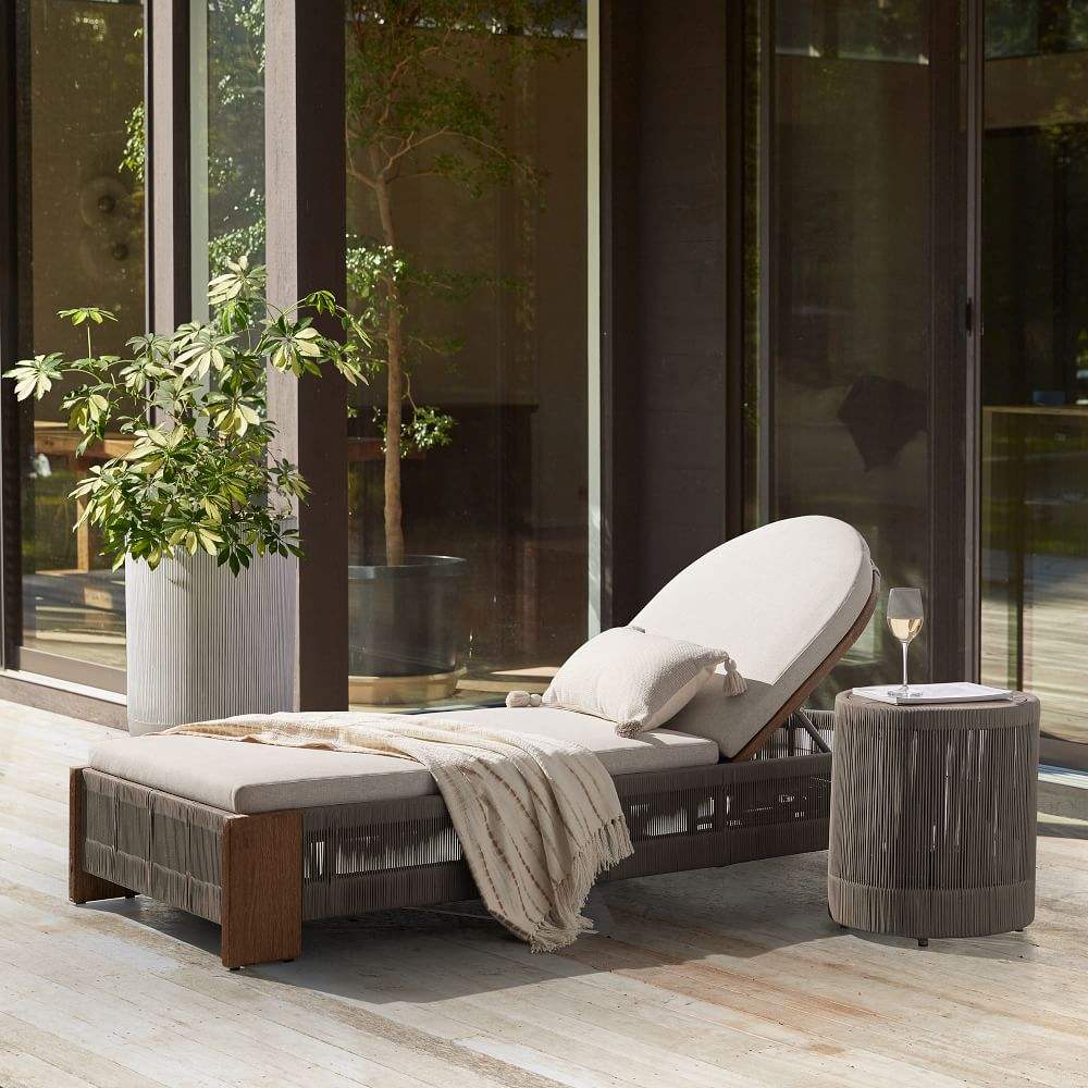Summer patio furniture all season rope weave outdoor lounge daybed teak