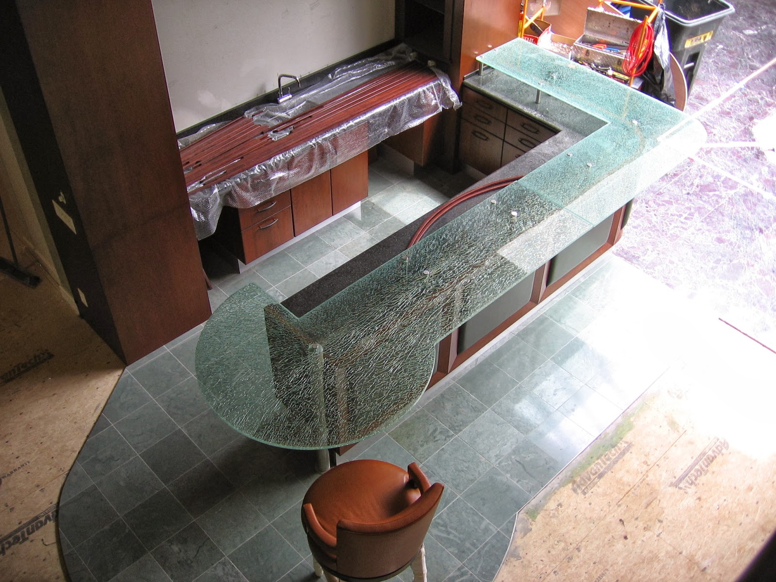 Glass Bar Top Project Installation Las Vegas A Cutting Edge Glass Custom Glass Bar Top Design unique bar tops that are the perfect fit for your project. See his portfolio of glass bar pieces. Glass artist marc konys can build you custom bar tops. Custom sheet metal bar tops in stainless steel, zinc, pewter, bronze, and copper. The customer has the ability to customize thickness, glass tint, textures, edge finishes, surface treatments, colors, led lighting,. Custom Glass Bar Top.