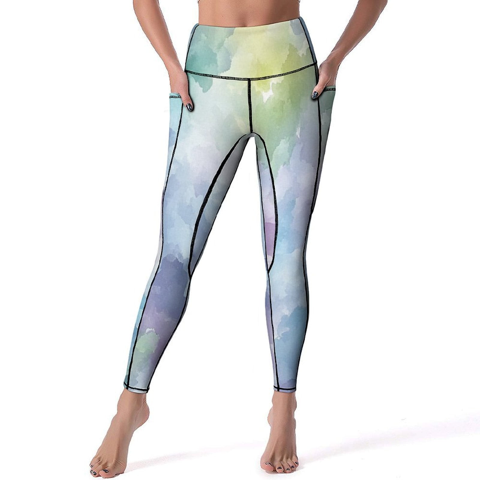 CLXMCS Pastel Watercolor Wash617 Women's Leggings, High Waisted Yoga