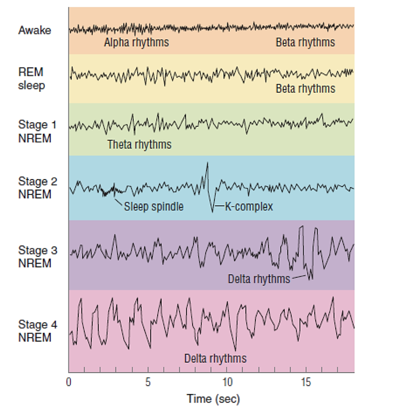 Stages of Sleep OpenStax Psychology Revisions Rem Sleep Waves Eeg While not observed on routine eeg,. Rem sleep has diffuse attenuation of activity with lateral eye movements in the frontal leads. Theta and gamma rhythms are the hallmarks of rem sleep as recorded by scalp eeg or intracranial local field potentials (lfps, fig. State characteristics are well defined: The asleep eeg goes through four phases: Rem Sleep Waves Eeg.