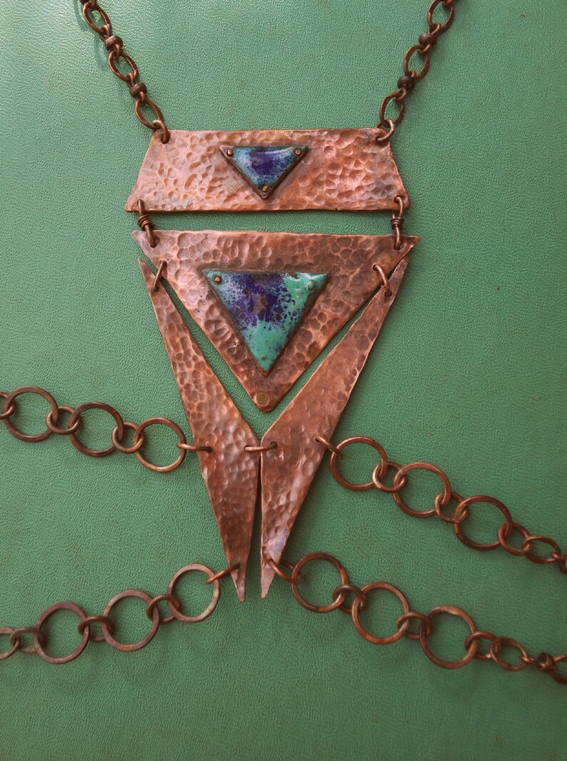 Hammered Metal Triangle Harness Necklace // Copper & Enamel Etsy Norway