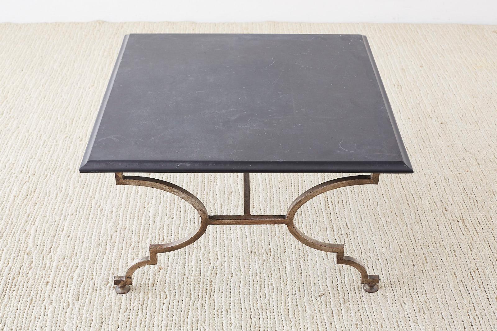 Italian Hollywood Regency Slate Top Iron Cocktail Table at 1stDibs