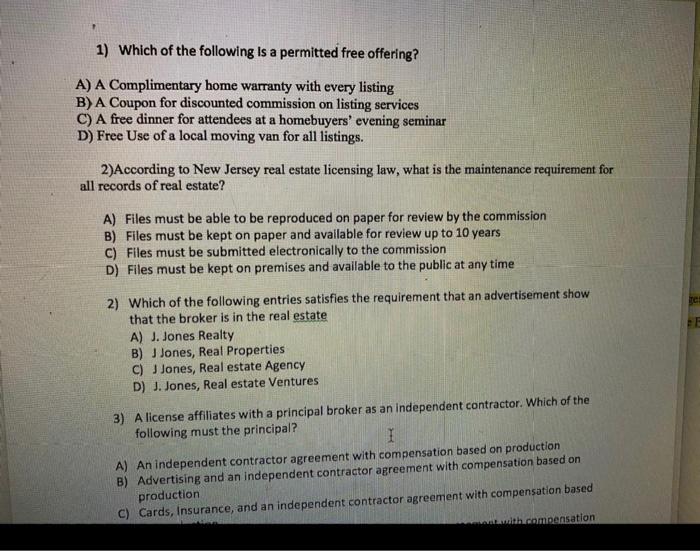 Solved 16) Under New Jersey Real Estate commission rules, a