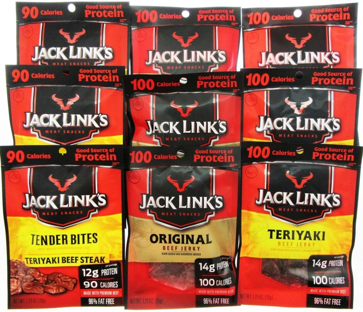 Jack Link's Beef Jerky Shop for jack link's original beef jerky, a classic snack with 10g of protein and 80 calories per serving. Jack link's offers a variety of meat snacks, including jerky, sticks, bars, drink mixes and more. Jack link's original beef jerky starts with lean cuts of 100% premium beef, marinated in jack link's signature seasoning blend and slow roasted over hardwood.. Jack Link's Beef Jerky.