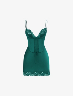 House Of Cb Womens Forest Soraya Lacetrimmed Satin Mini Dress ModeSens