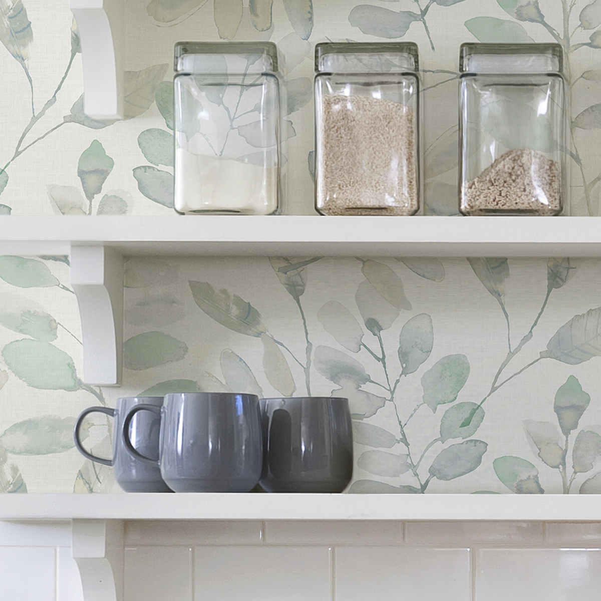 Removable Peel 'n Stick Wallpaper, SelfAdhesive Wall Mural, Watercolor White Fable Leaf Peel & Stick Wallpaper Peel and stick to apply, pull up to remove. atop a white backdrop, muted aqua leaves with grey accents combine to create this stunning nature trial. Inhome is safe for walls and leaves no sticky residue behind. achieve a welcoming and serene ambiance in your home with this botanical peel and stick wallpaper. Floral trial peel and stick. White Fable Leaf Peel & Stick Wallpaper.