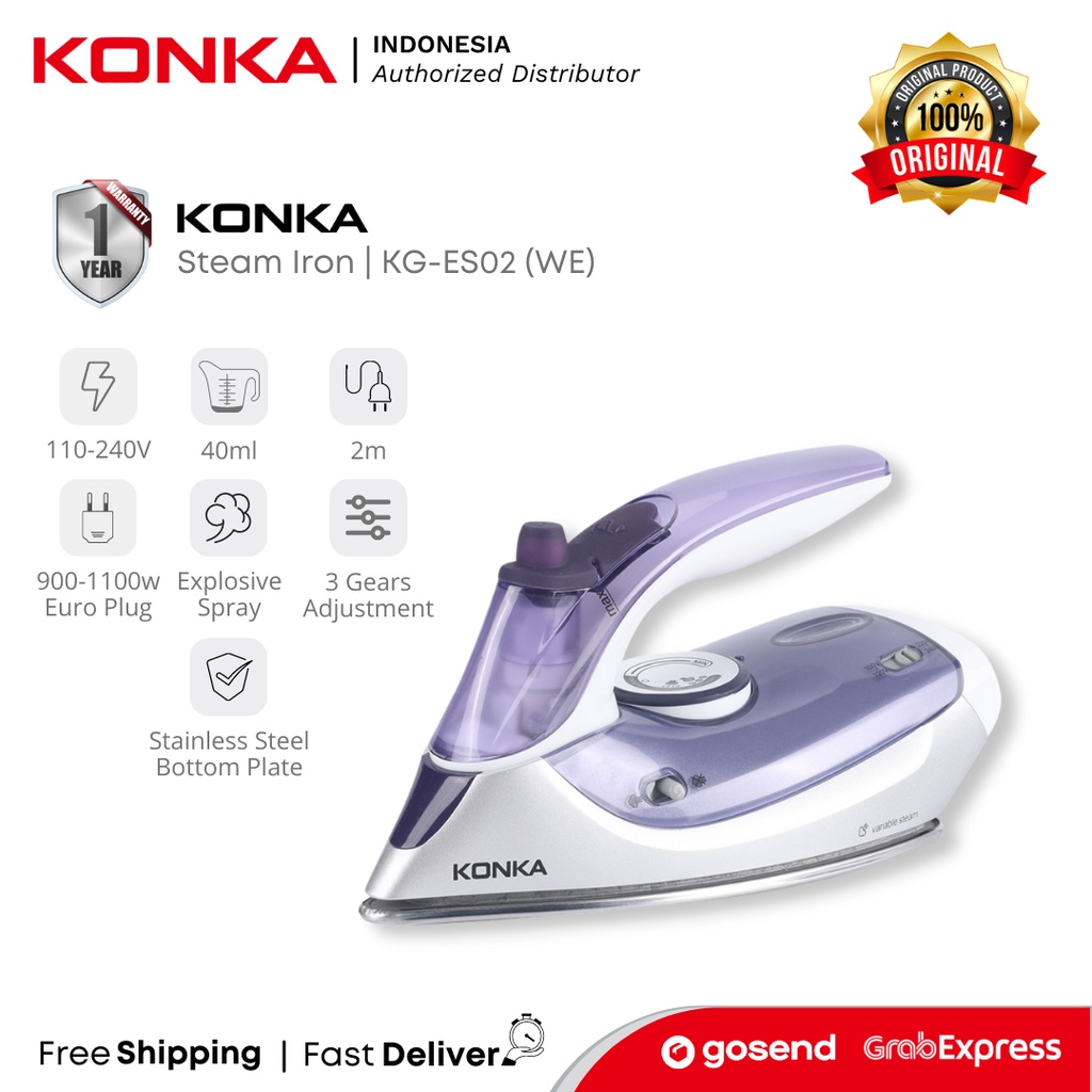 Jual KONKA Setrika Uap Travel Steam Iron KGES02(WE) Shopee Indonesia