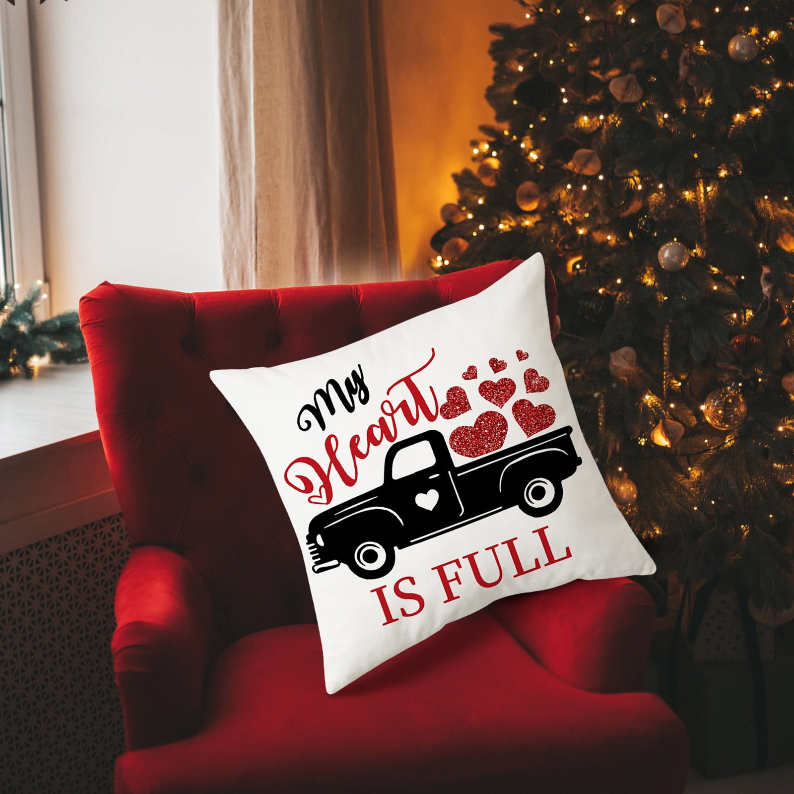 SDJMa Valentine's Day Pillow Covers 18x18, Glitter Red Heart & Balloon
