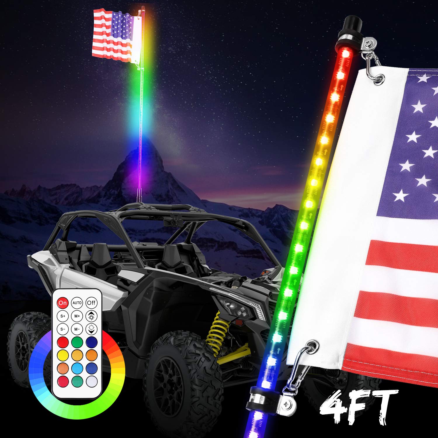 Buy 4ft LED Whip Light, SWATOW INDUSTRIES Lighted Antenna Whips RGB LED