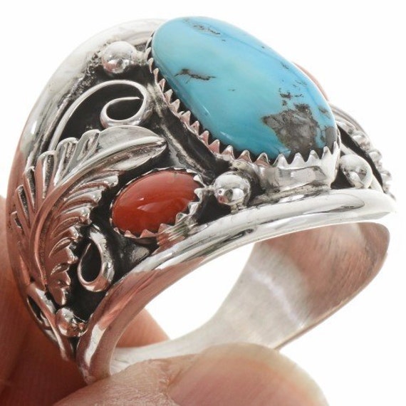 Navajo Turquoise & Coral Mens Silver Ring Etsy in 2020 Mens silver Mens Navajo Rings Etsy Blue copper turquoise mens ring, handmade ring, 925 sterling silver ring, boho ring,. this is a great looking mens ring in prime navajo style. check out our mens navajo rings selection for the very best in unique or custom, handmade pieces from our shops. shop etsy, the place to express your creativity through the buying and selling. Mens Navajo Rings Etsy.