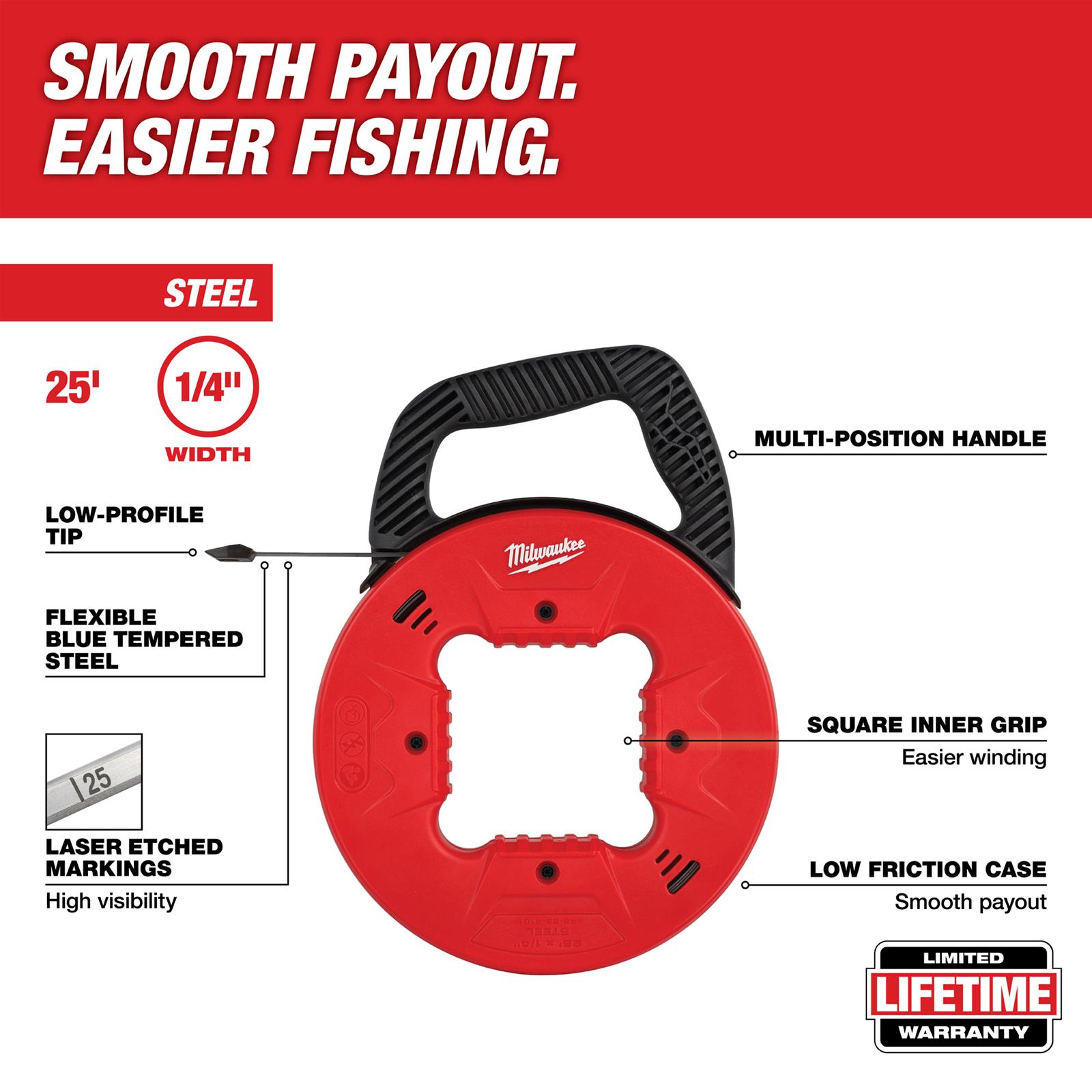 MILWAUKEE 240 ft Fish Tape, Steel, 1/8 in Tape Size, Round Tape Profile Fish Tape Milwaukee the milwaukee® m18 fuel™ angler™ pulling fish tape system is the world's first battery powered fish tape solution. the milwaukee m18 fuel. our m18 fuel™ angler™ interchangeable pulling fish tape system is the world's first battery powered fish tape solution. the milwaukee m18 fuel angler interchangeable pulling fish tape system is the world's first battery. . Fish Tape Milwaukee.
