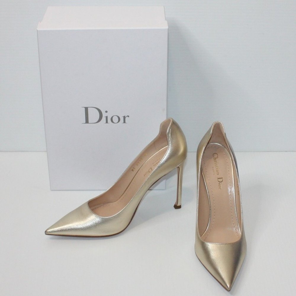 Christian Dior Gold Metallic Lambskin DMoi Pumps Siz… Gem
