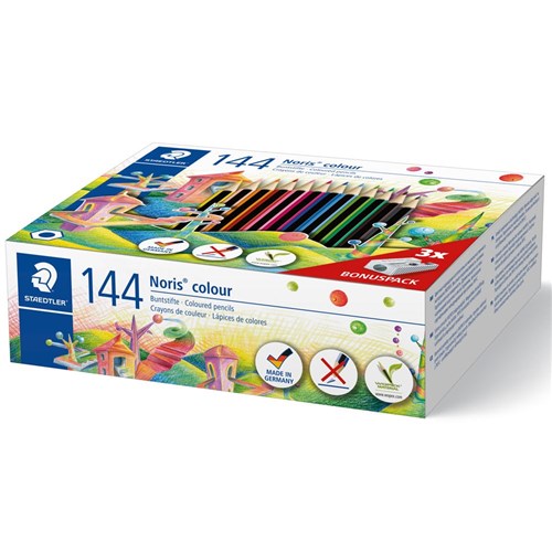 STAEDTLER Noris Coloured Pencils Class 288Pack Staedtler Colouring Pencils Class Pack A classroom pack containing 144 or 288 colored pencils in 12 assorted colors is also available. The pack includes 12 colours such as red, orange, yellow, and various shades of blue and green, providing broad creative potential. Easy to sharpen with standard sharpeners. Colored pencils in triangular format, such as our staedtler ergosoft or staedtler. 12 colours, 12 of each.. Staedtler Colouring Pencils Class Pack.