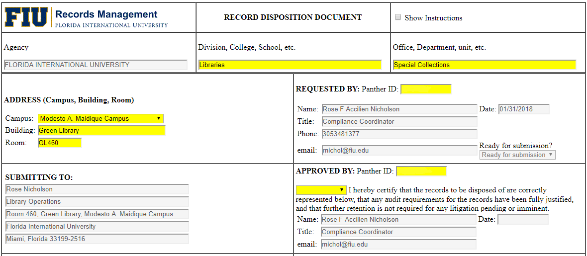 EForm Information & Instructions FIU Records Management