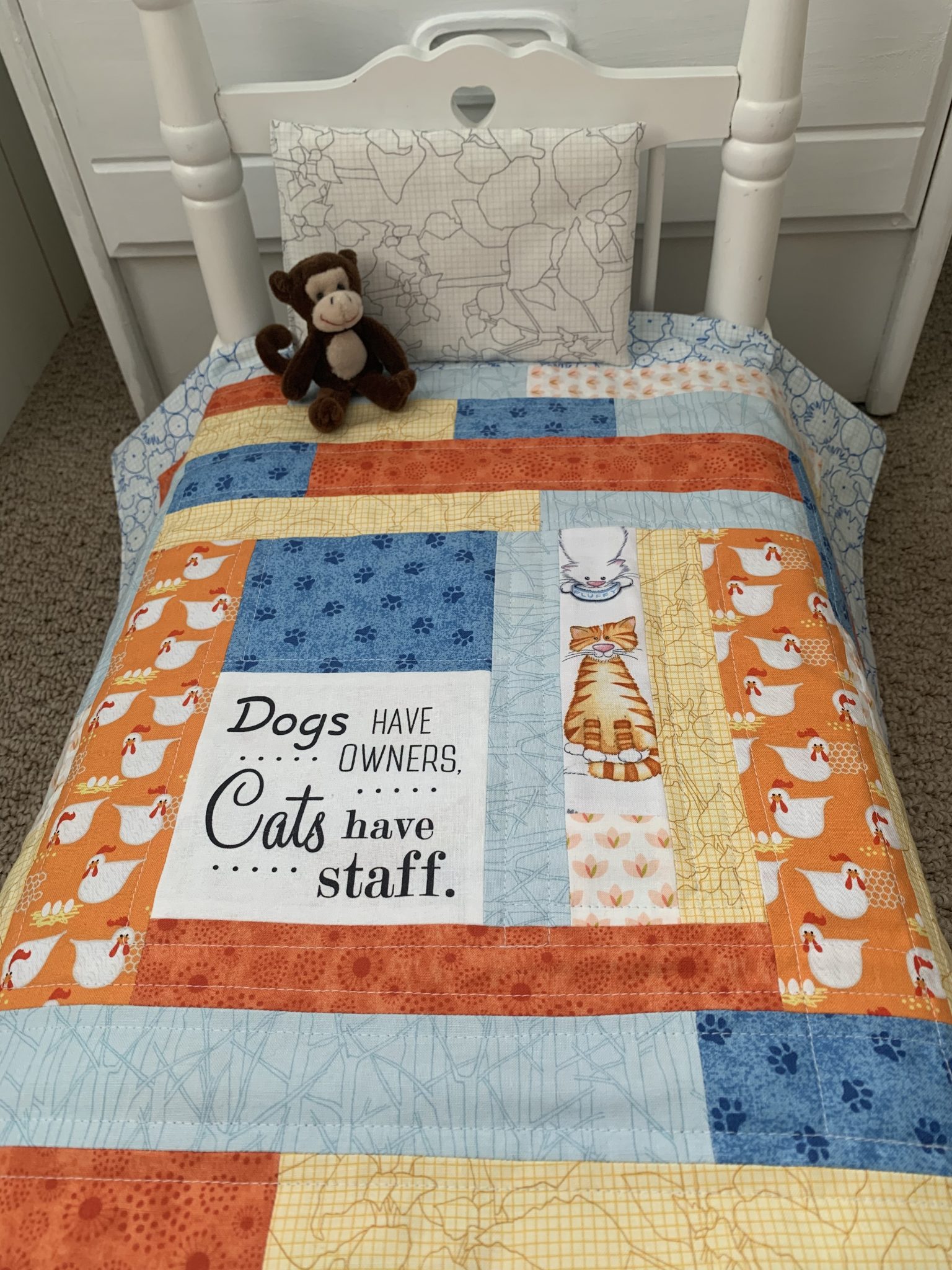 Modern Patchwork Doll Quilt How To Make A Patchwork Doll Quilt when you’re done sewing the doll patchwork quilt and pillow, use the “how to sew a ruffled maxi dress for an 18″. The whole project is fun, these quilts are so darned cute! You can whip one up. On this tutorial, i’ll be sharing the steps to make a doll quilt for a rag doll i made before, but. How To Make A Patchwork Doll Quilt.