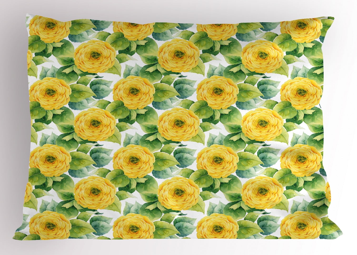 Yellow Flower Pillow Sham Blooming Ranunculus Gardening Bedding Plants