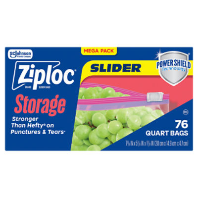 Ziploc® Brand Slider Storage Bags with Power Shield Technology, Quart