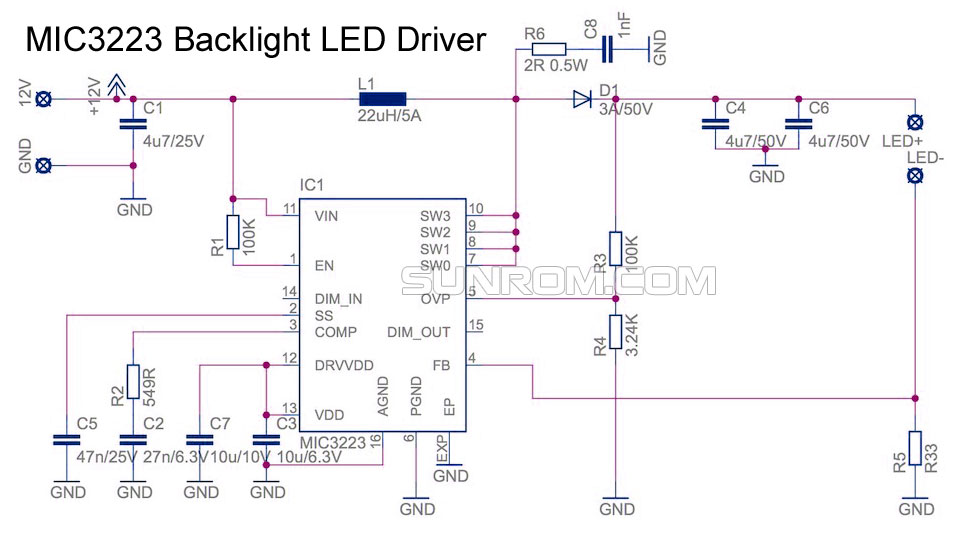 MIC3223 Backlight LED Driver [6100] Sunrom Electronics