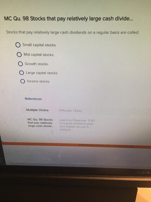 Solved Stocks that pay relatively large cash dividends on a