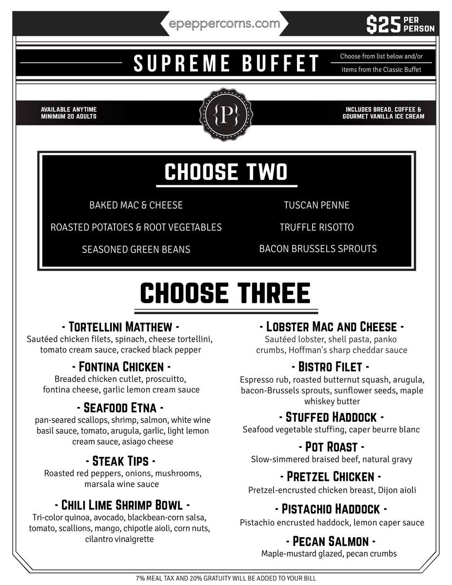 Function Menus Peppercorn's Grille & Tavern Restaurant in Worcester, MA