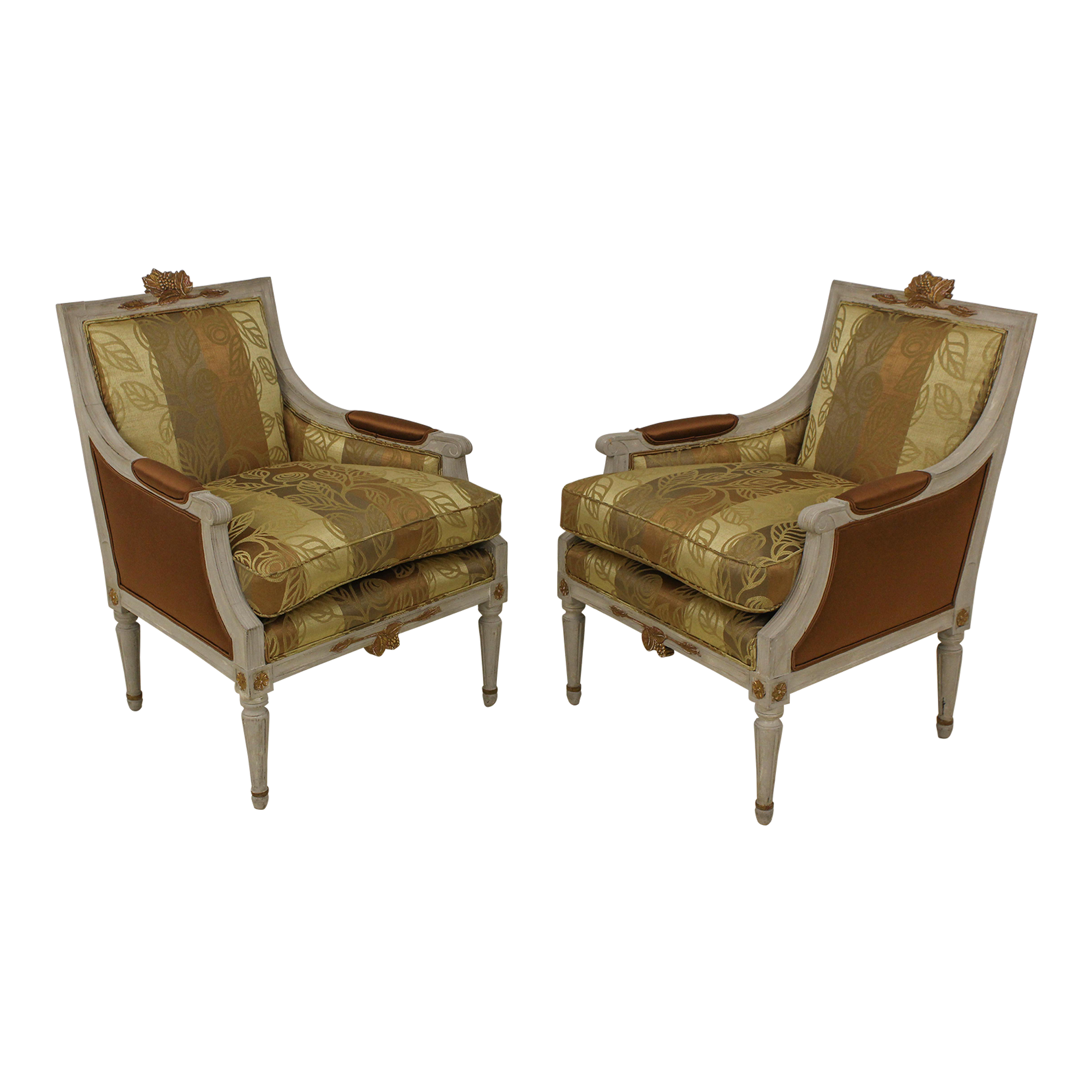 Pair Neoclassical Upholstered Bergere Chairs Chairish